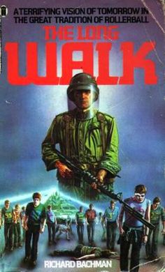 I really am obsessed with his first novel, The Long Walk, and is eager to discuss this novel. It is a very harrowing book. The rules were simple. Walk above four miles an hour without slowing. If you go under, you receive a warning. After three warnings, you will be shot and killed by the soldiers on mechanized carts that runs on tracks on either side of the walkers’ route. I read it at age twelve and was disturbed by the violent images of teenagers’ skulls and body parts being blown to bits by the government approved troops. Not only that, but the walkers suffer Post Traumatic Stress Disorders and often tear into each other, not only physically, but psychologically. I believe this was the atmosphere during the Vietnam War drafts era of 1954 to 1973, inspiring the saying, “Don’t trust anyone over thirty.”